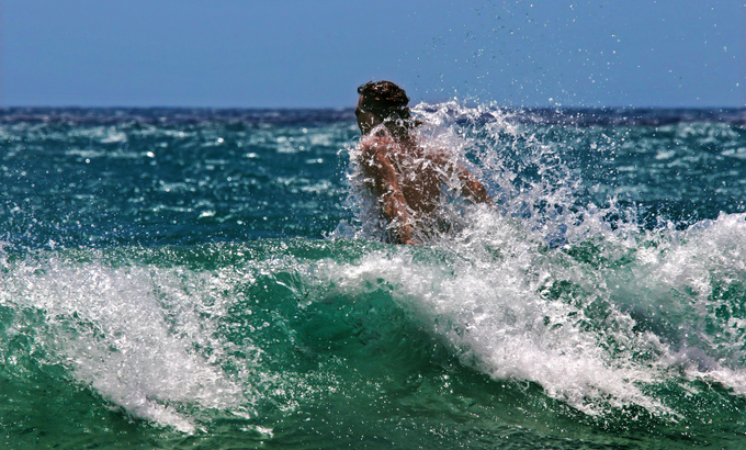 A fürdőévad kezdetén, egyszer, amikor a tengert nyugtalan, fehér hullámok barázdálták, bement a vízbe, és eltűnt a viharban. Csak két óra múltán jutott eszébe a fürdősnek, hogy utánanézzen. Riadtan vette észre, hogy a kabinjában még ott lógott a ruhája, a láthatáron pedig a nyugtalan víz már összeölelkezett a szürke esővonalakkal. Rögtön nagy csónakkal indultak utána, az egész fürdőközönség talpon volt, s keresték-kutatták egész éjjel, eredménytelenül. Senki sem hitte, hogy elvergődhetett a közeli szigetig. Az apját Budapestről sürgönyileg lehívták, mindenütt elterjedt a hír, hogy a tengerbe fúlt. Végre két nap múlva, mikor már nem is keresték, egy reggel felbukott a vízben prüszkölve és fújva, sápadtan és lesoványodva, az erős úszók nyugalmával, és paskolta, verte, sodorta, visszaköpte a reátajtékzó hullámokat.